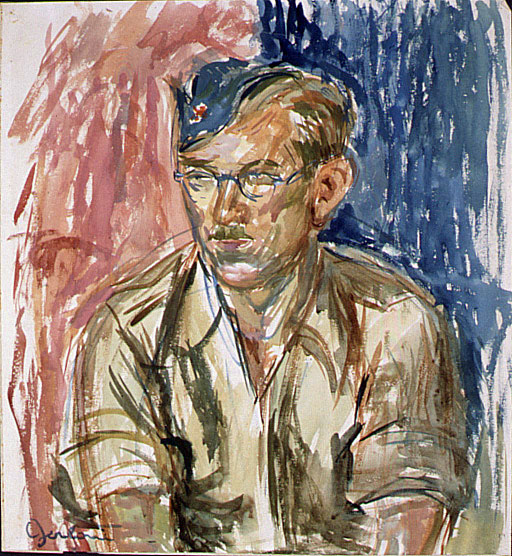 Portret svojega moža Vita Globočnik je Alenka Gerlovič ustvarila tik po koncu druge svetovne vojne. Delo nastopa v značilni portretni maniri, s katero je umetnica znala ujeti tako zunanje značilnosti kot notranjo držo upodobljenca. Moški, s partizansko čepico in očali, je prikazan v trenutku tihe zbranosti – ne kot heroj v akciji, temveč kot misleča figura, vpeta v zgodovinski čas, a hkrati zelo človeška. Na njegovi čepici je izpostavljena rdeča zvezda kot ključni simbol narodnoosvobodilnega boja in nove ideološke identitete povojne Jugoslavije. V ozadju se bohotita dve barvni polji, rdeče in modro, med katerima figura skoraj lebdi. Ta barvna kompozicija ustvarja kontrast in atmosfero notranje napetosti. V tem lahko prepoznamo aluzijo na jugoslovanske barve (rdeča, modra, bela), ki simbolično utrjujejo pripadnost ideji nove države in skupne borbe južnoslovanskih narodov. Barvni nanosi so hitri, ekspresivni, z značilnim akvarelnim prelivanjem, ki izraža živo prisotnost trenutka. Risba je spontana, a zanesljiva ter poudarja figure brez pretiranega modeliranja, v čimer se posebej kaže veščina umetnice. Delo ob enem ne le dokumentira podobo konkretnega posameznika, pomembnega umetnika, kulturnika in aktivista, temveč simbolizira širšo generacijo kulturnikov, ki so sodelovali v narodnoosvobodilnem boju in v njem igrali tudi idejno-vrednostno vlogo.