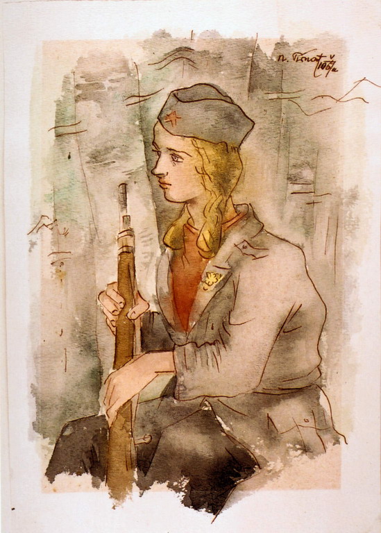 Pirnat je bil mojster figure – predvsem ženske figure –, ki jo je znal upodobiti v razponu med ranljivostjo in močjo. Tudi tukaj je podoba polna nasprotij: dekletova mladost in milina nista v nasprotju z njeno samozavestjo in pripadnostjo boju. Puška, ki jo nosi, in uniforma poudarjata njeno vlogo v zgodovinskem trenutku, a kompozicija ohranja osebno, skoraj intimno atmosfero.