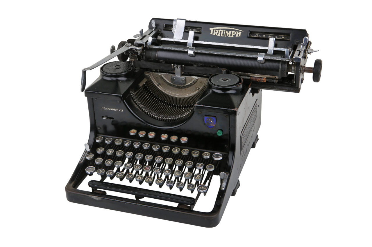 Pisalni stroj Triumph Standard 12 s serijsko številko 232726 je bil izdelan leta 1939 v nemškem podjetju v Nürnbergu. Njegova prva lastnica je bila Tržačanka Poldka Gruden, partnerka Dorčeta Sardoča – soustanovitelja narodnoobrambne protifašistične organizacije TIGR.